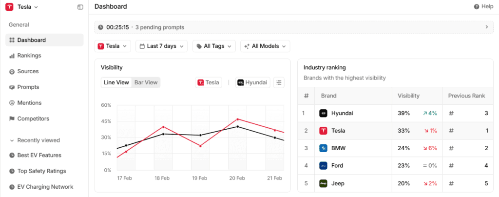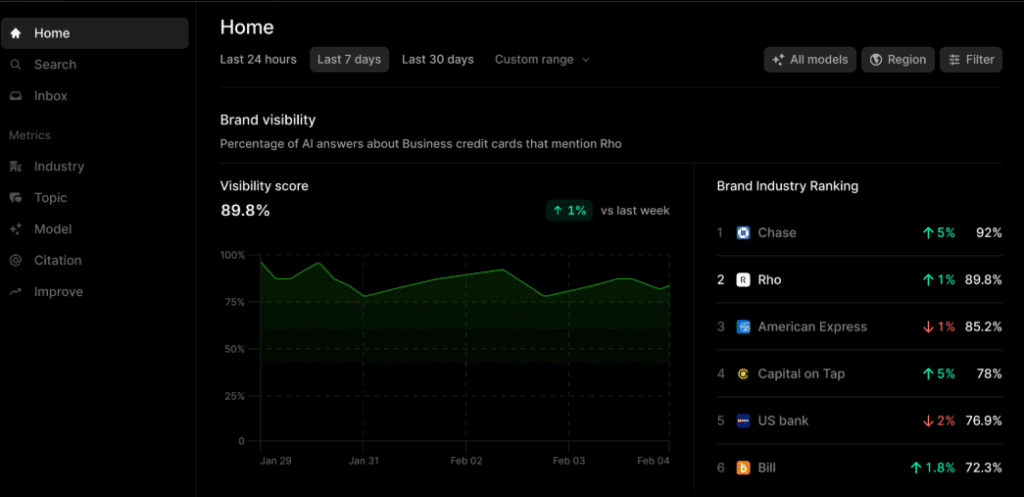 Profound, por su parte, escanea diferentes modelos y versiones de LLMs, identifica patrones y mide la consistencia con la que tu marca es incluida en las respuestas.