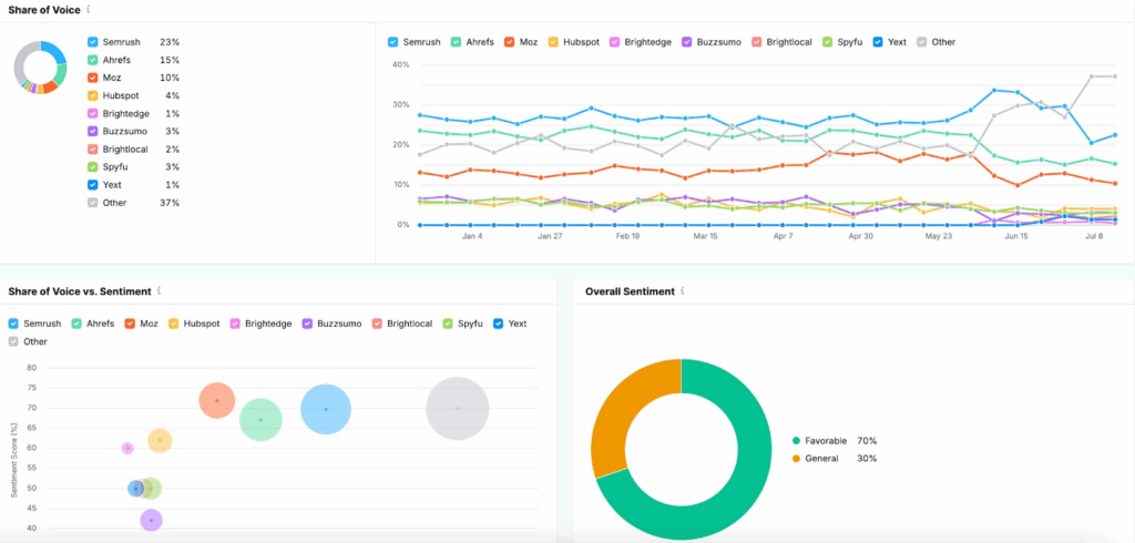 Semrush ha lanzado nuevas funciones orientadas a medir visibilidad en AI Search, complementando sus herramientas de SEO tradicional ya consolidadas. Permiten rastrear keywords específicas y ver si tu sitio aparece en los resultados generados por IA, junto con análisis comparativos frente a competidores.
